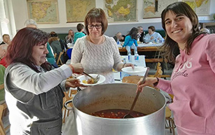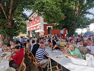 Comida en la estación de Porqueros en la soleada tarde del 9 de agosto de 2023, organizada por la comisión de fiestas del pueblo.  |