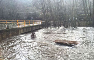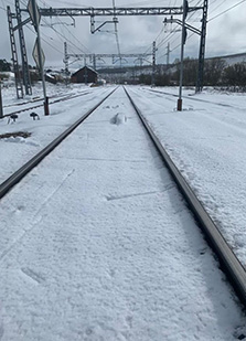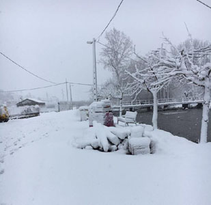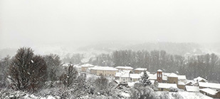 Nevadas del 2021. Nevada de principios de diciembre de 2021, publicada en el facebook de "Porqueros -León-". Se puede ver la estación con luces navideñas nevada, el rio y la iglesia, el ganado pastando entre la nieve.