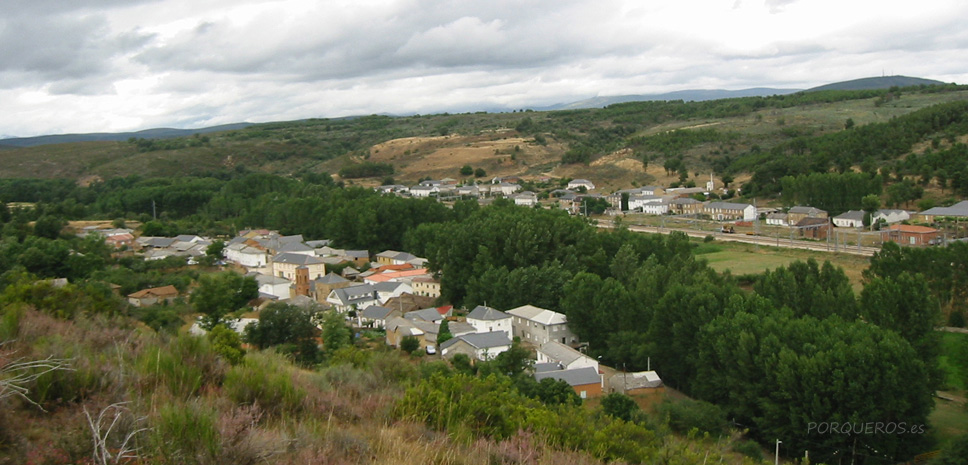 Fotos aéreas tomadas en verano del pueblo y la estación. Desde las distintas colinas como la corona. Aparece el rio Porcos atravesando el pueblo, así como el trazado de las vías del tren que dividen el pueblo.  |